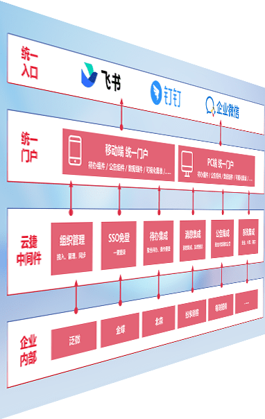 对协作平台提供支持服务,,支持企业应用与协作平台对接,,,包含组织同步、、、消息集成、、、待办集成等。。。支持目前主流的协作平台:钉钉、、、、企微和飞书。。